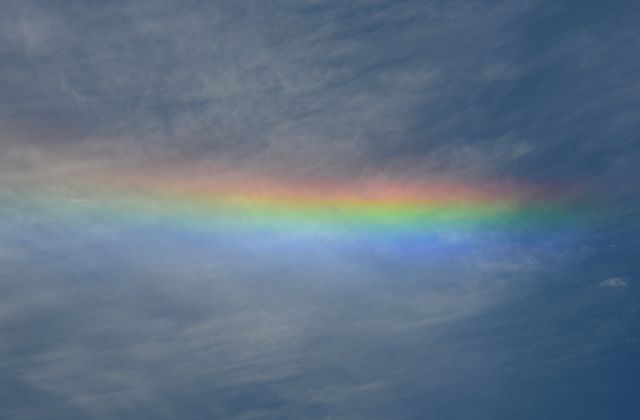 「太陽の下にほぼ水平な虹のような帯が見える現象。幻日と同じく上空の大気中の氷晶が 太陽光を屈折