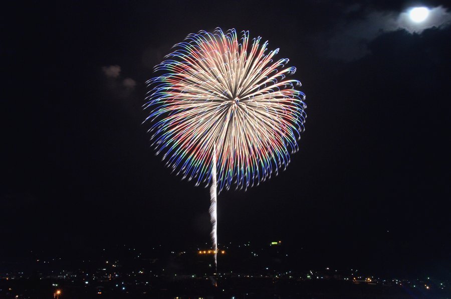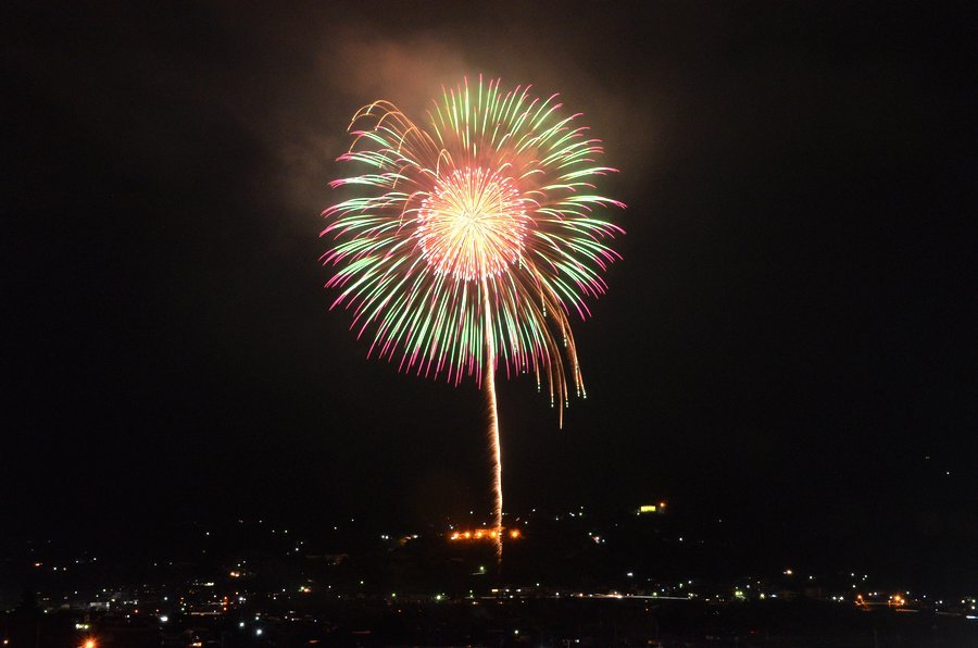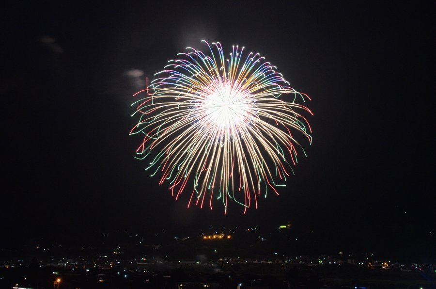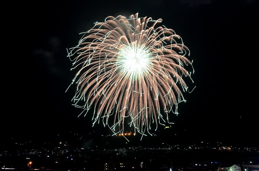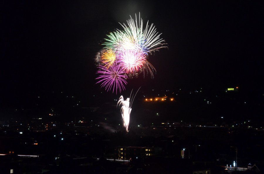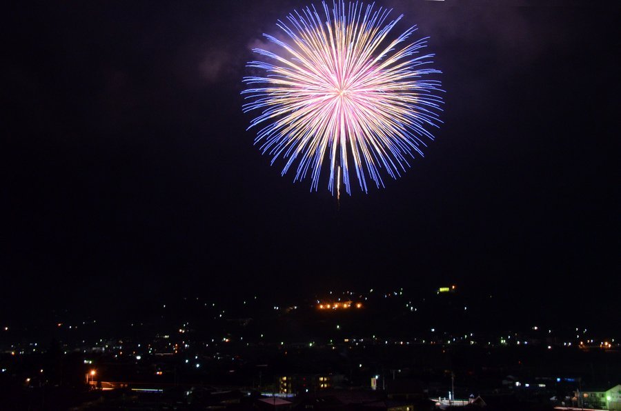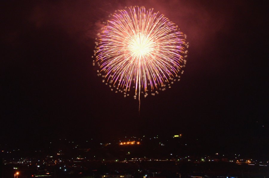 燈籠流しと打上げ花火なのだが、燈籠流しは離れた場所に出掛けたので何も見えず終い(;_;)。