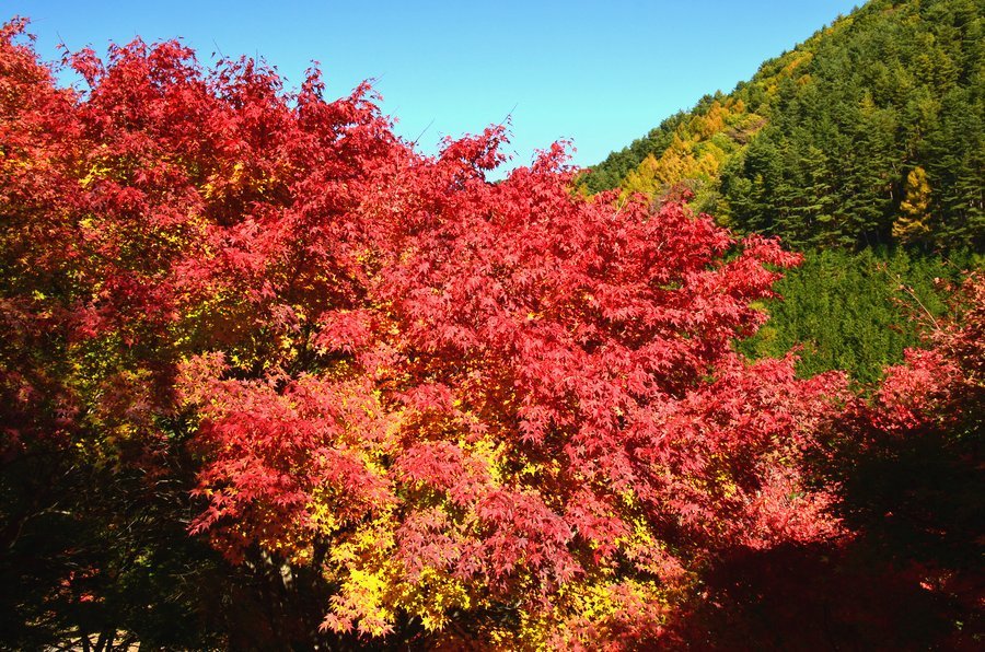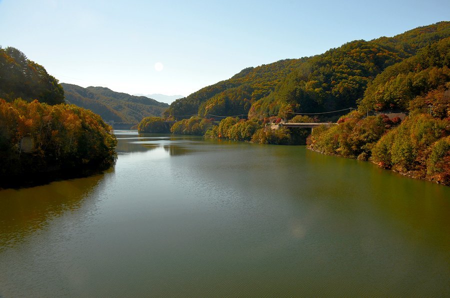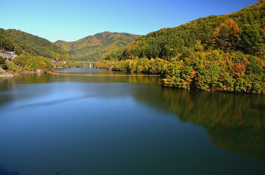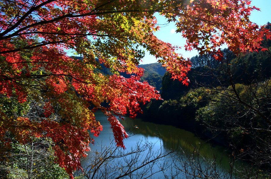 箕輪ダムの周辺には10、000本のモミジが植えられていてきれい綺麗な紅葉が見られる。