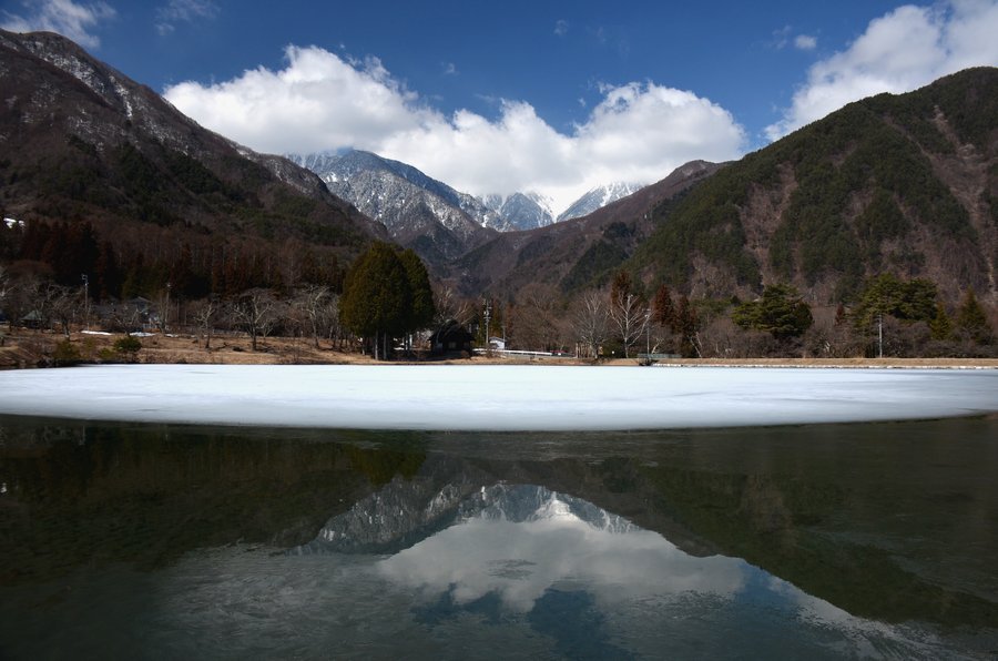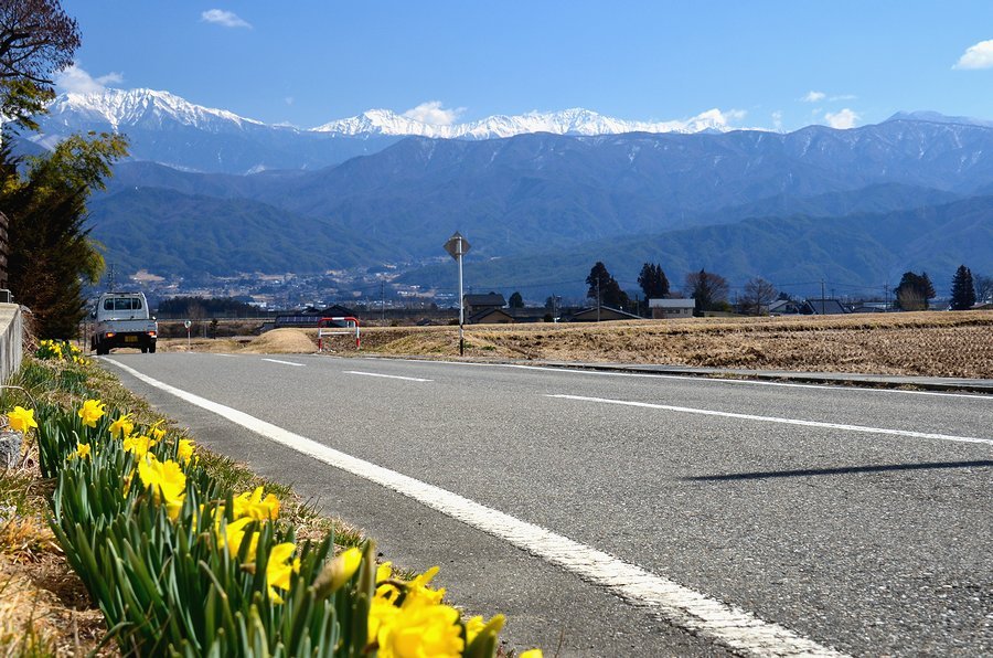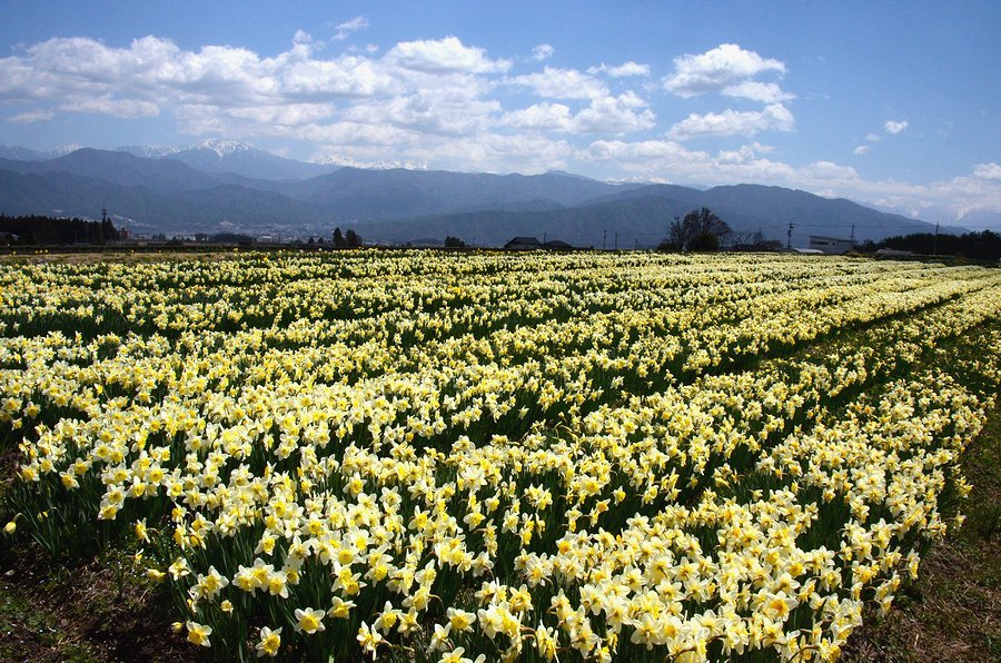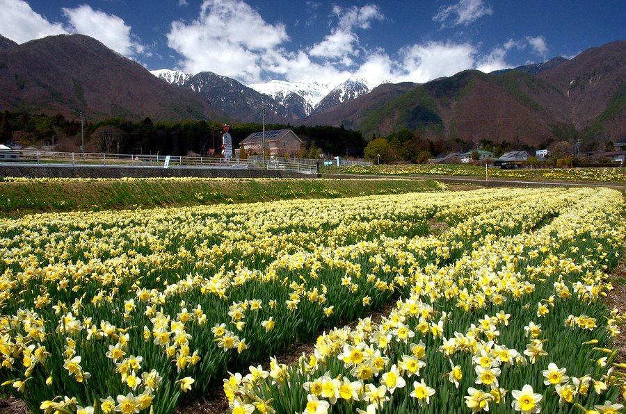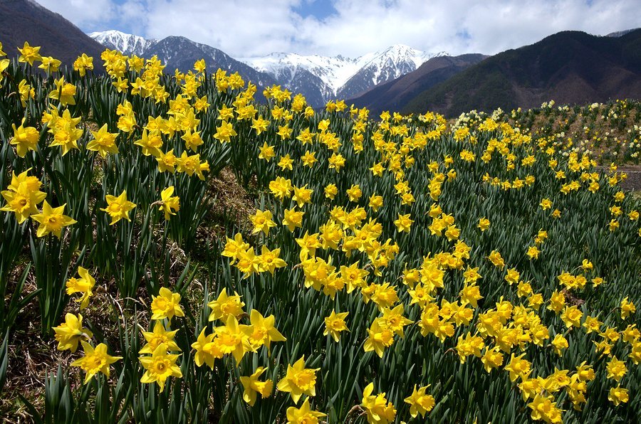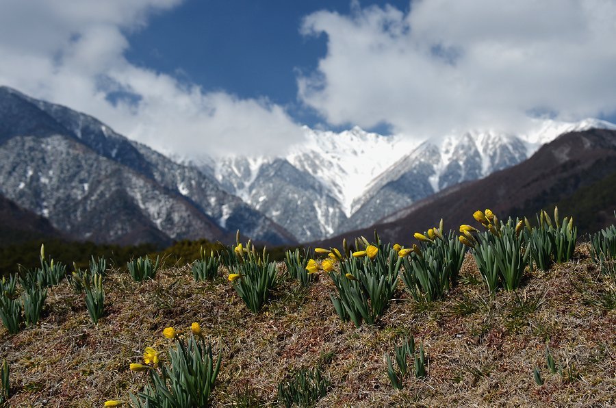 南/中央アルプと水仙 撮影 2016.3.11,23/4.14