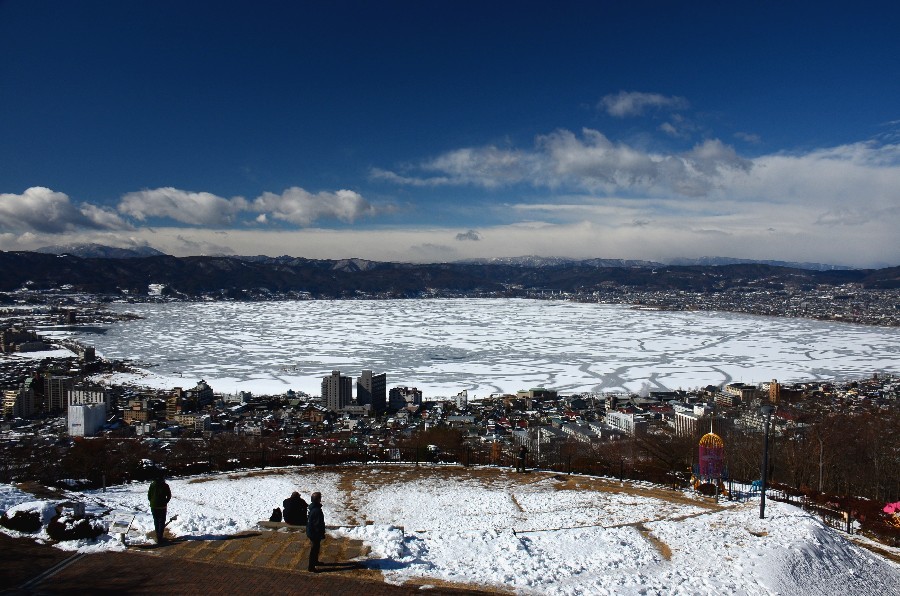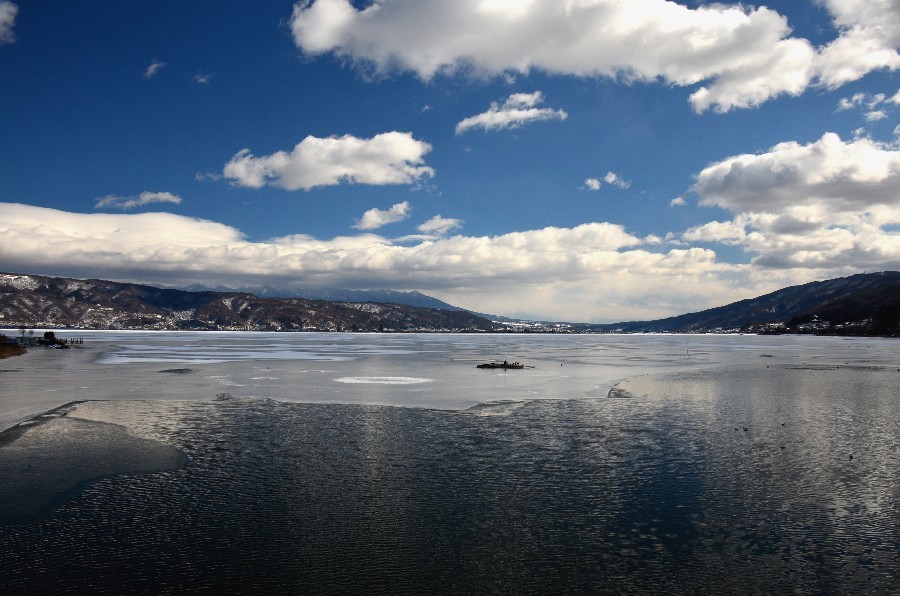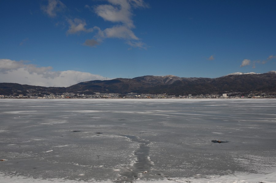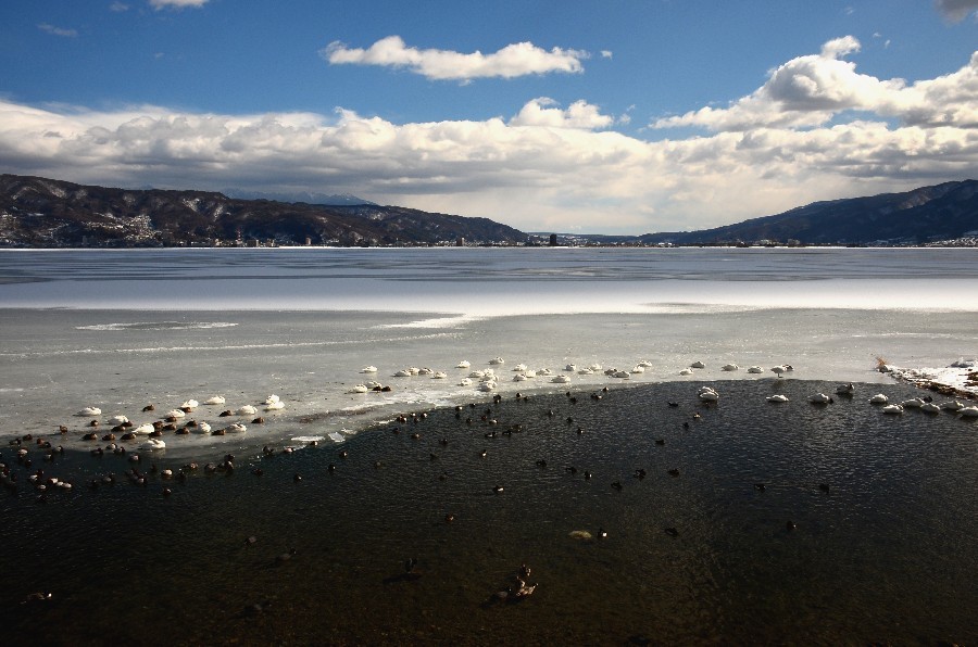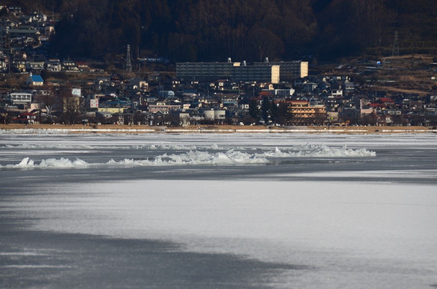 厳冬の諏訪湖に早朝から出向く元気は無く用事もあったので後日行って見た。