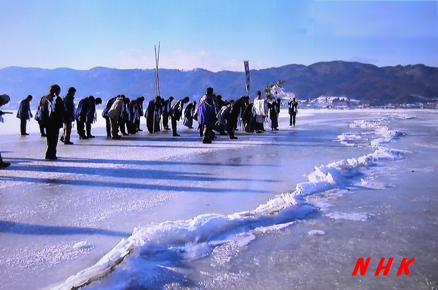 諏訪湖では5年振りに御神渡りが出現した。当時は拝観式を追っかけたて撮ったものだが・・・