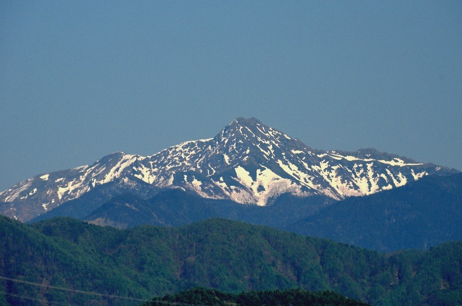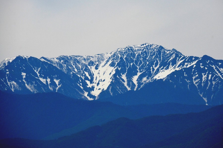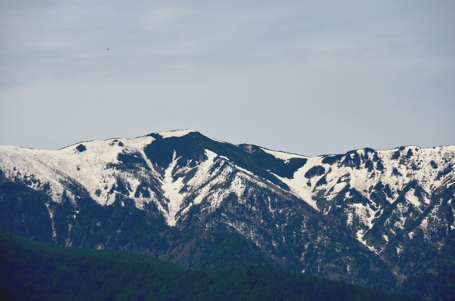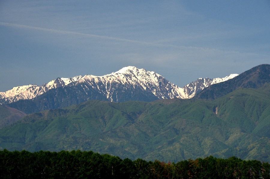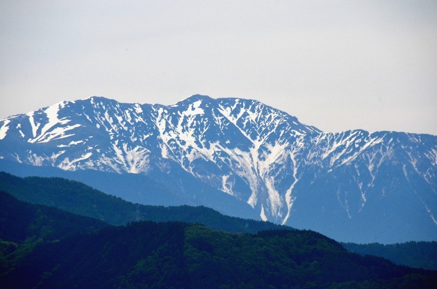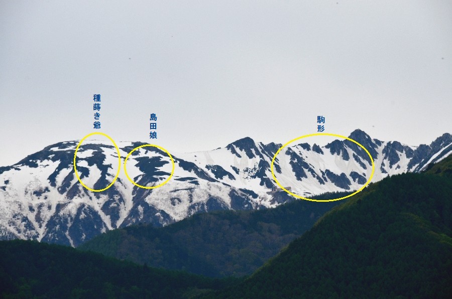 田んぼの水鏡に映る中央/南アルプス、雪形 撮影 2018.5.8〜12