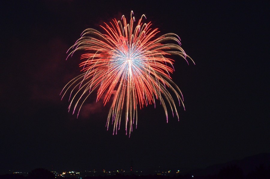 お盆の行事万灯、お祭り花火 撮影 2018.8.5