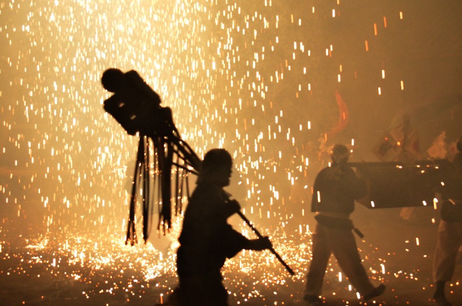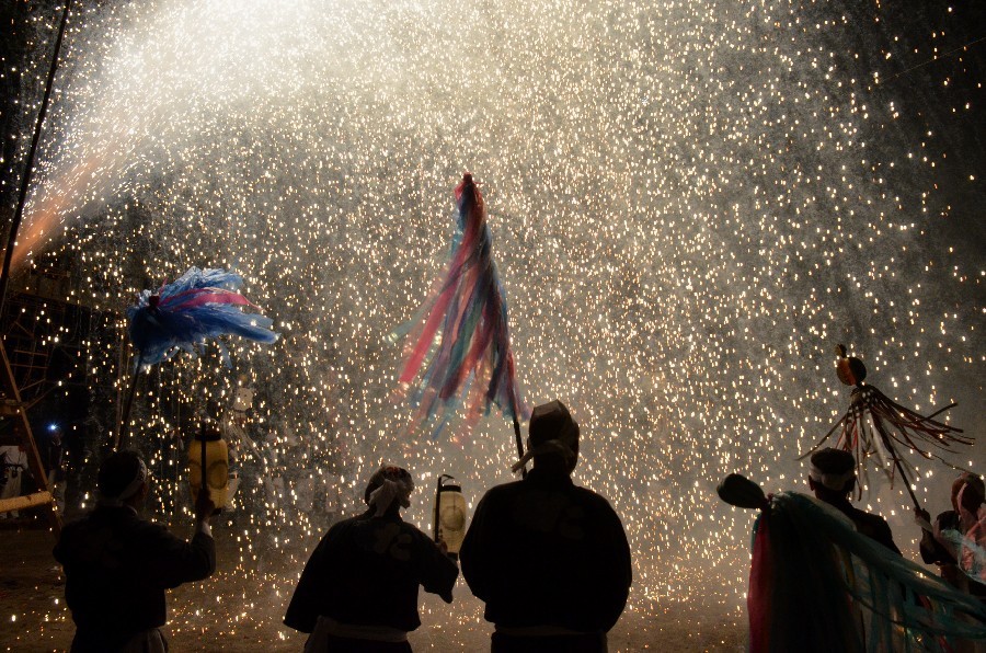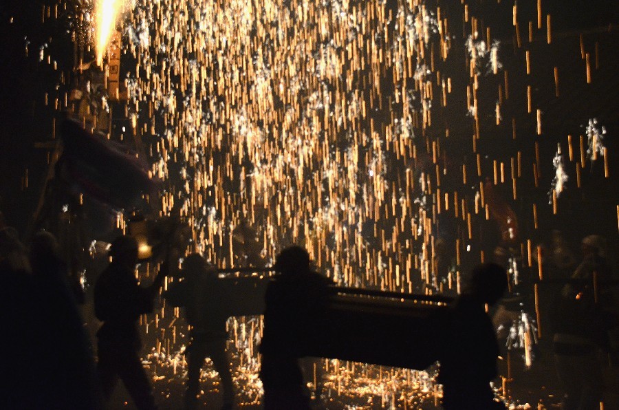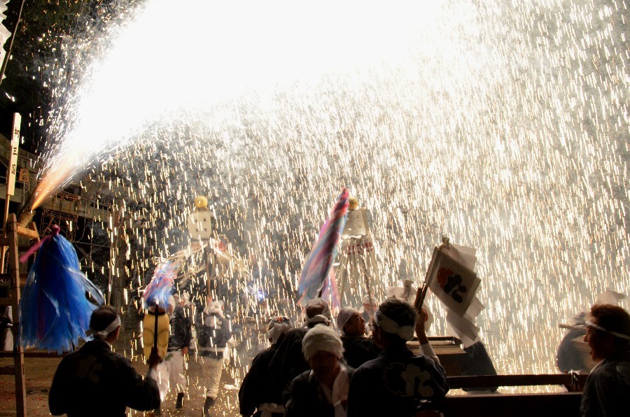 秋の神社例大祭の花火 撮影 2015.9.22/23