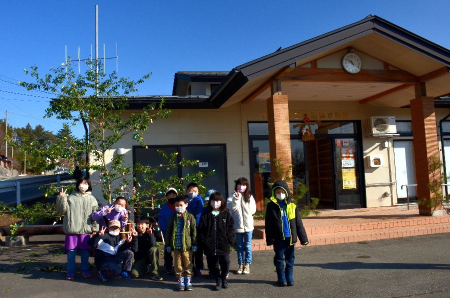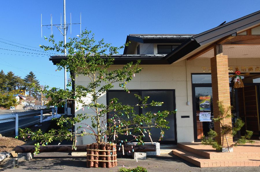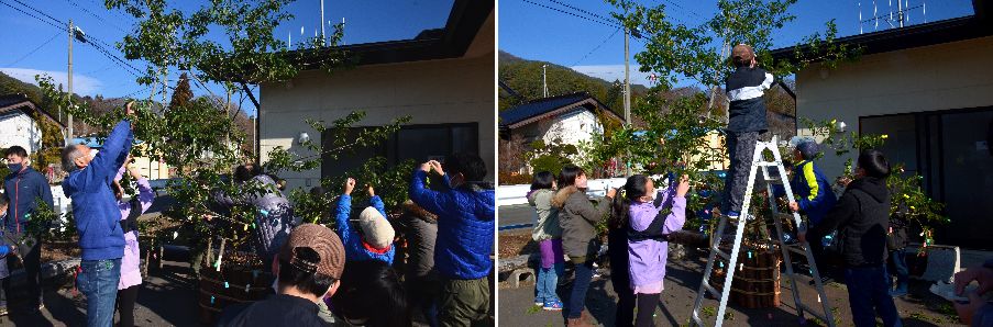 翌 7日は分館役員/子供会が中心で繭玉作って飾り付け |