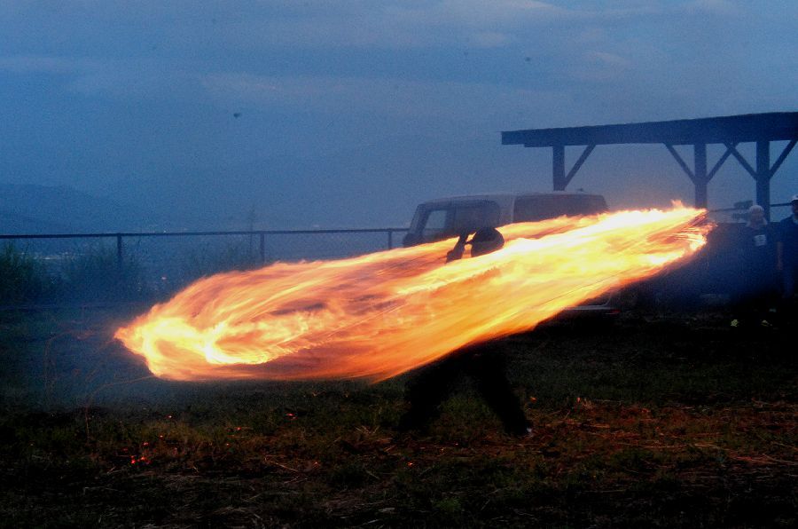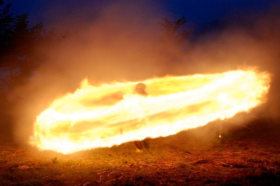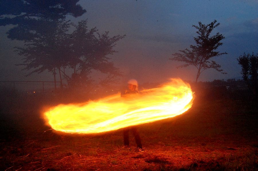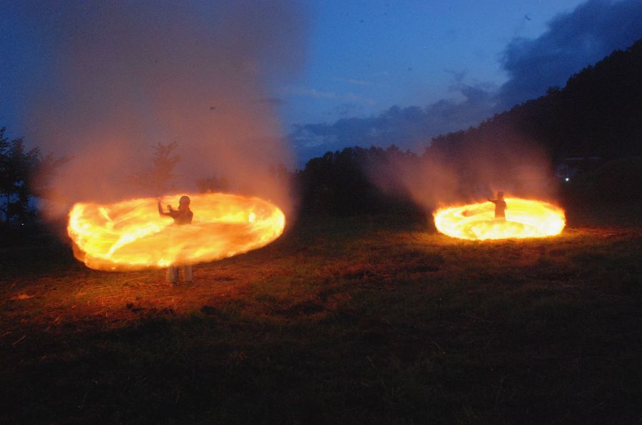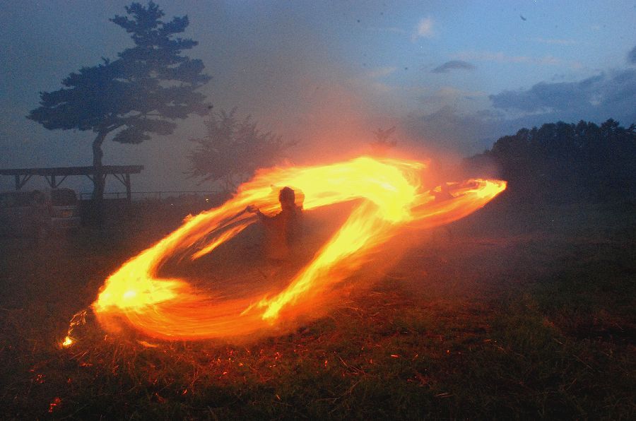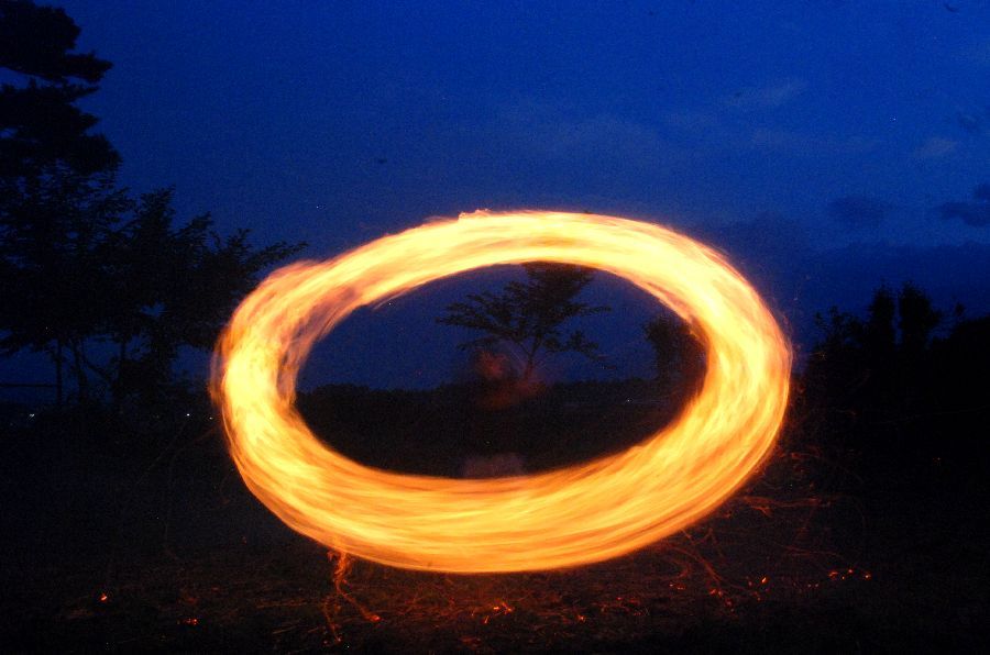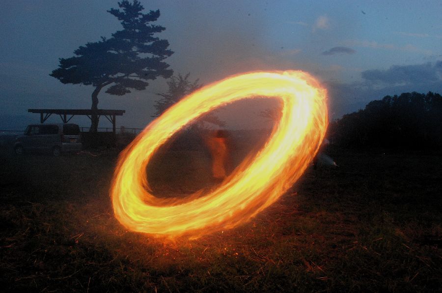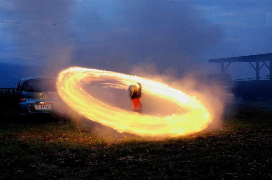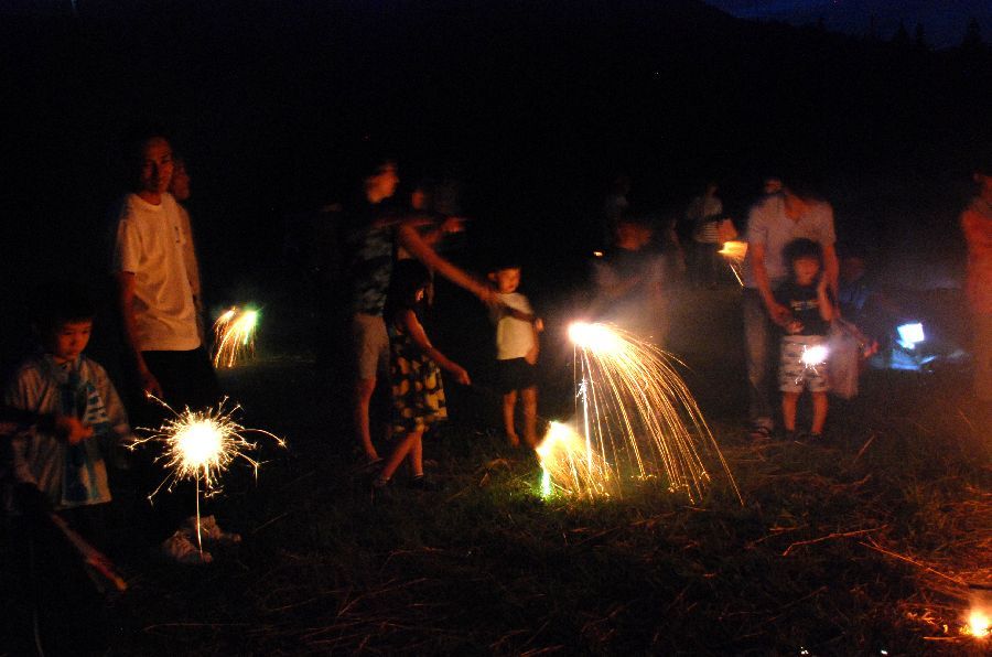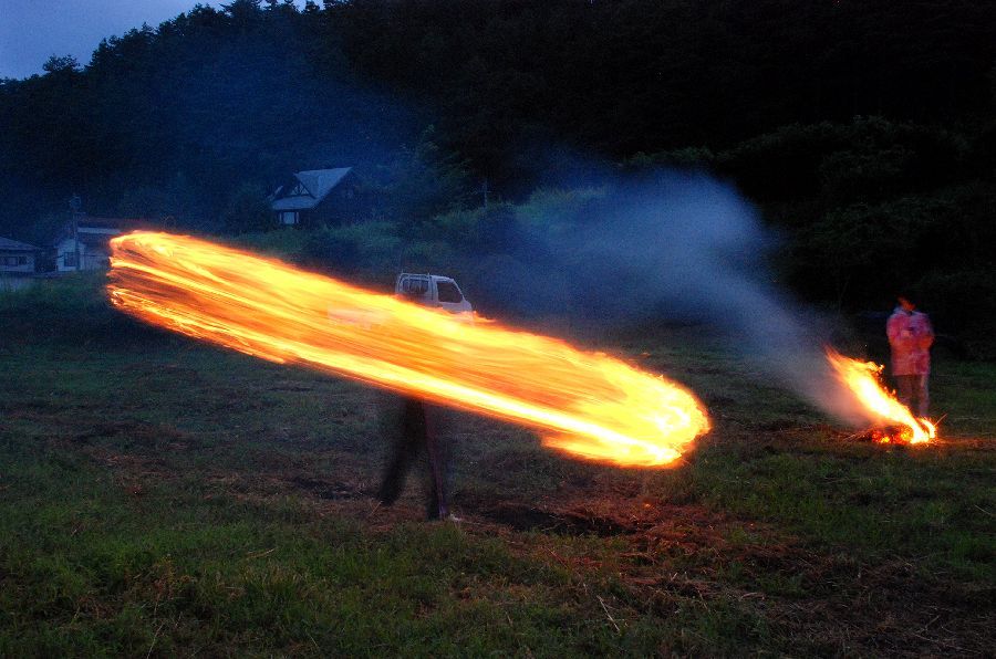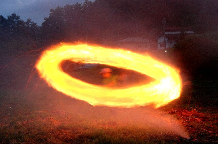 迎え万灯で慣れて、みんな上手に振り回せた。
