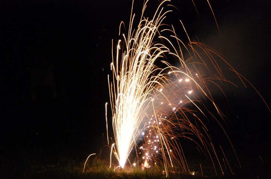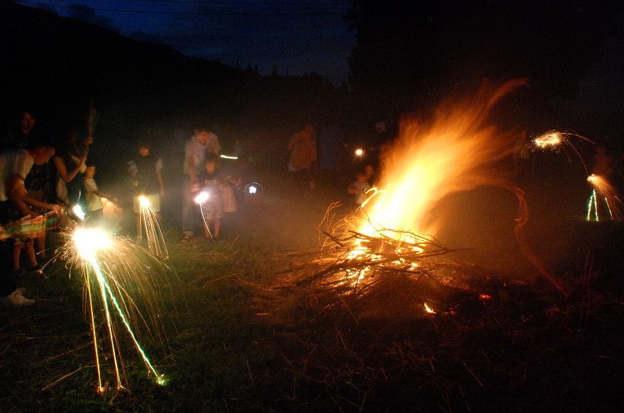 お盆の恒例の伝統行事:8/13の迎え灯振りに続いて、8/16は送り万灯振り。その後、花火会