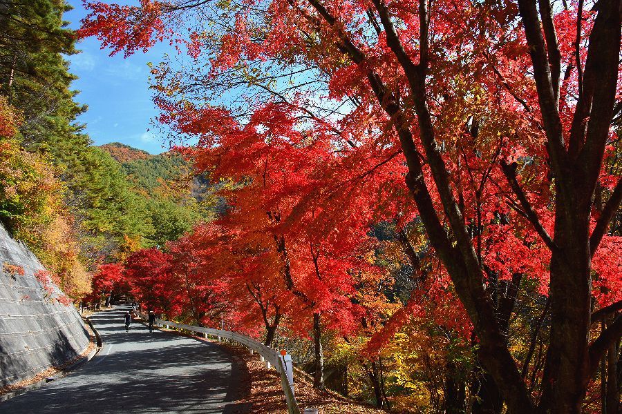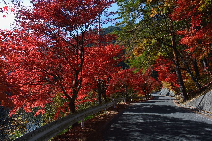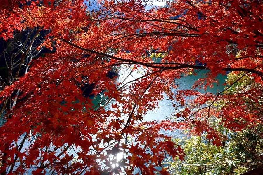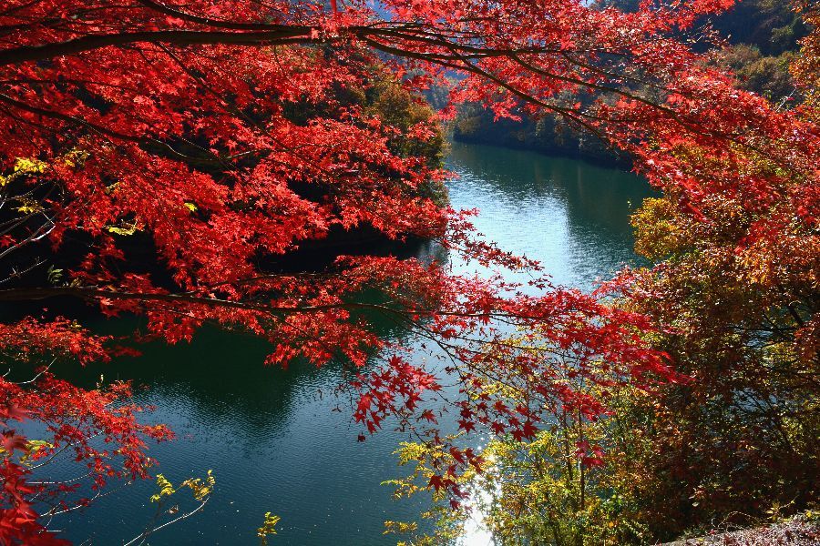 秋らしく無い日が多かったが10000本のもみじの紅葉を誇る箕輪ダム(もみじ湖の紅葉は)