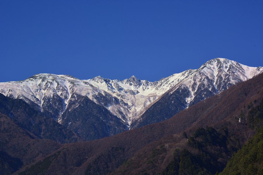 南アルプスの雪山 スライドショーは自動開始ですが、画像にカーソルを置くと、←前画像、次画像→が表示され停止します。