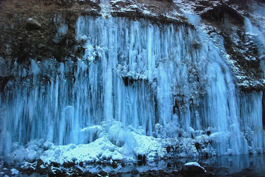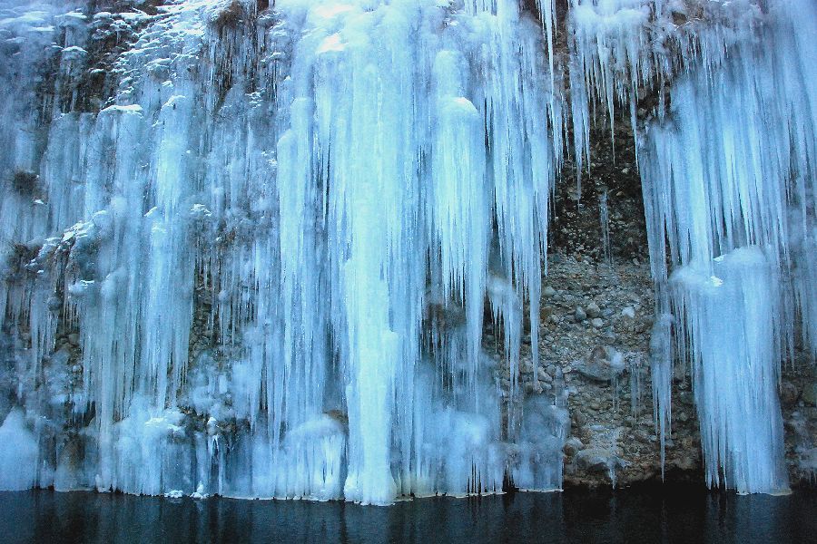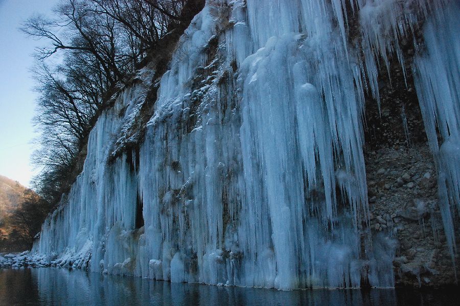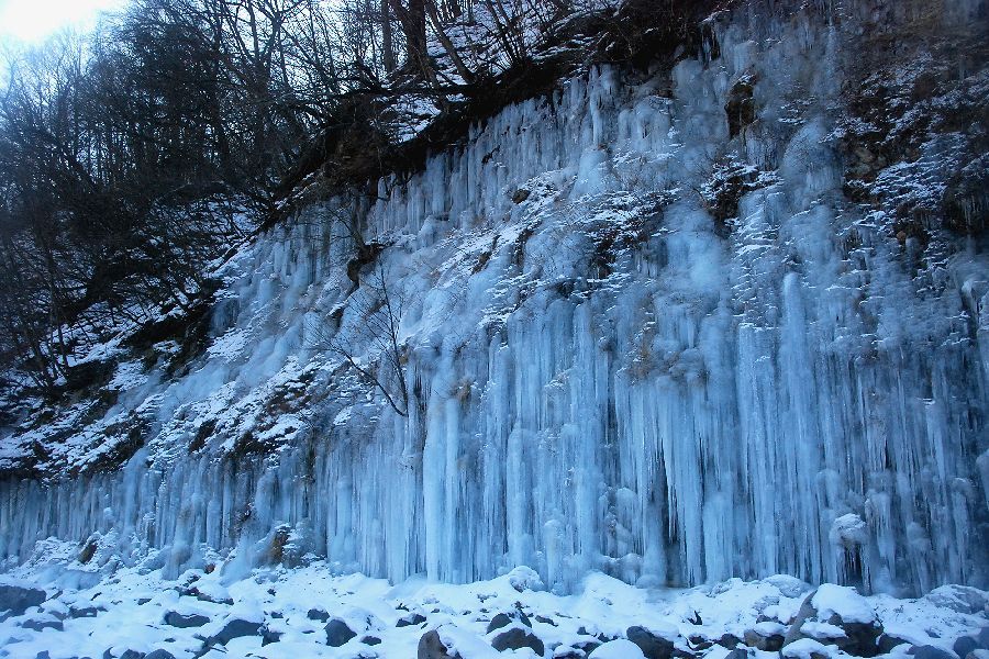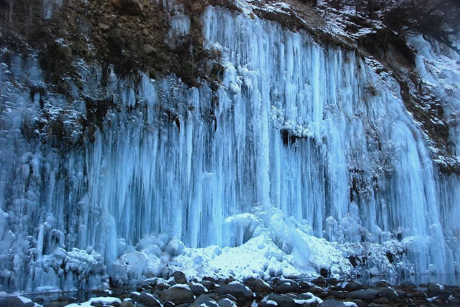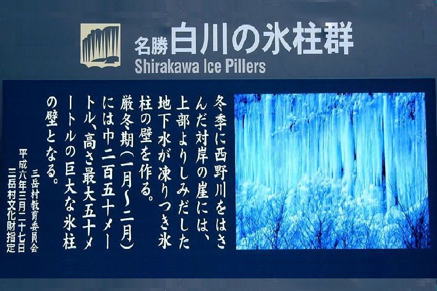 木曽郡三岳村・白川の氷柱群 スライドショーは自動開始ですが、画像にカーソルを置くと、←前画像、次画像→が表示され停止します。