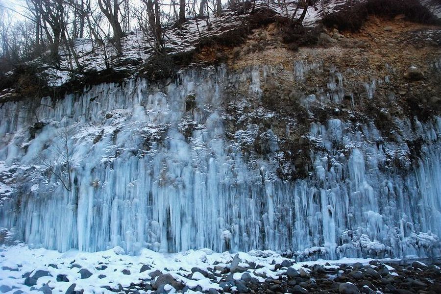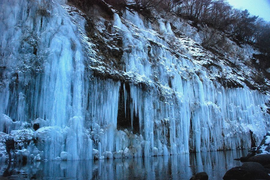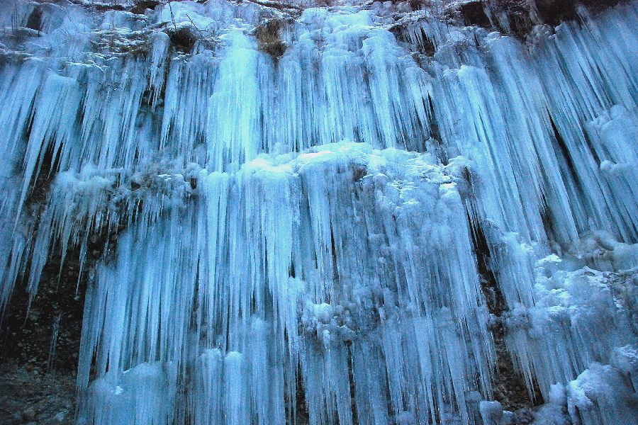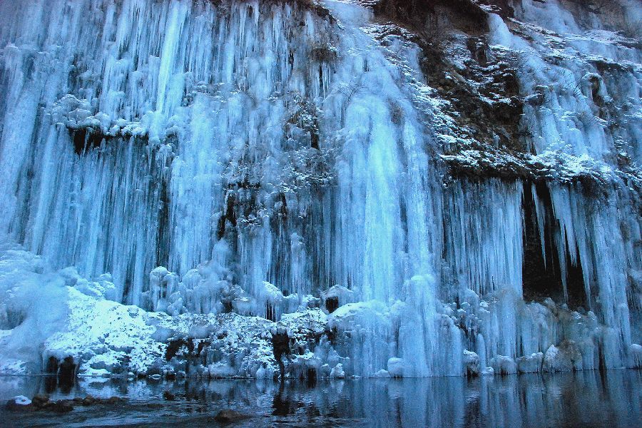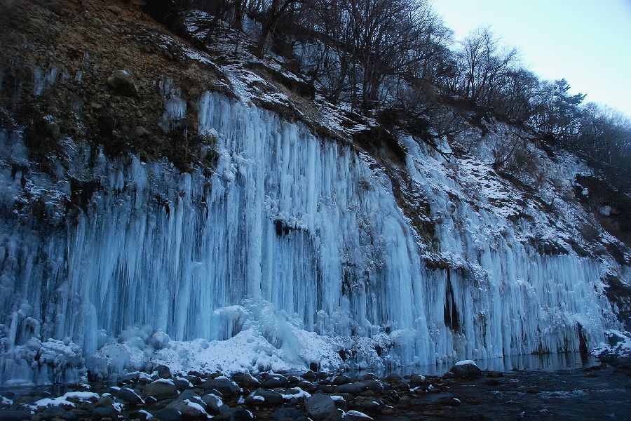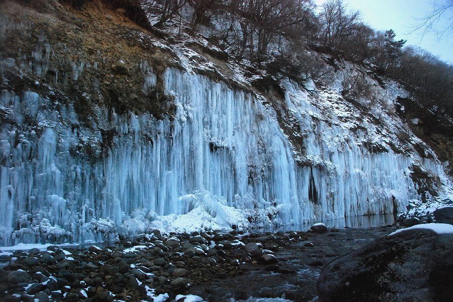 木曽郡三岳村・白川の氷柱群 スライドショーは自動開始ですが、画像にカーソルを置くと、←前画像、次画像→が表示され停止します。