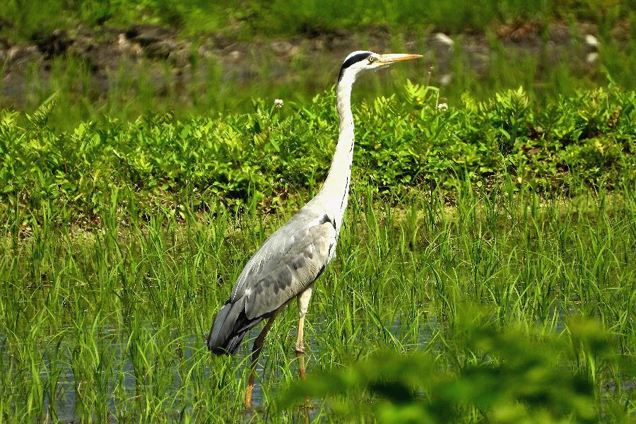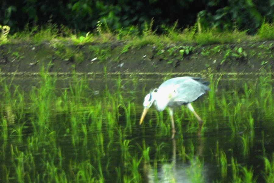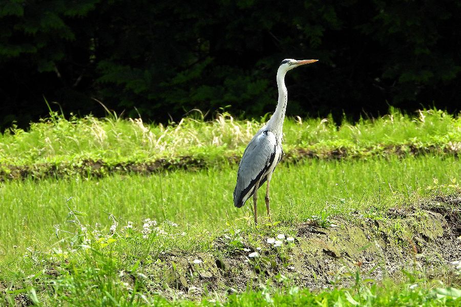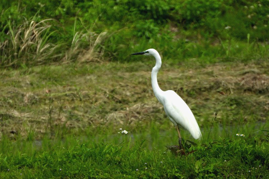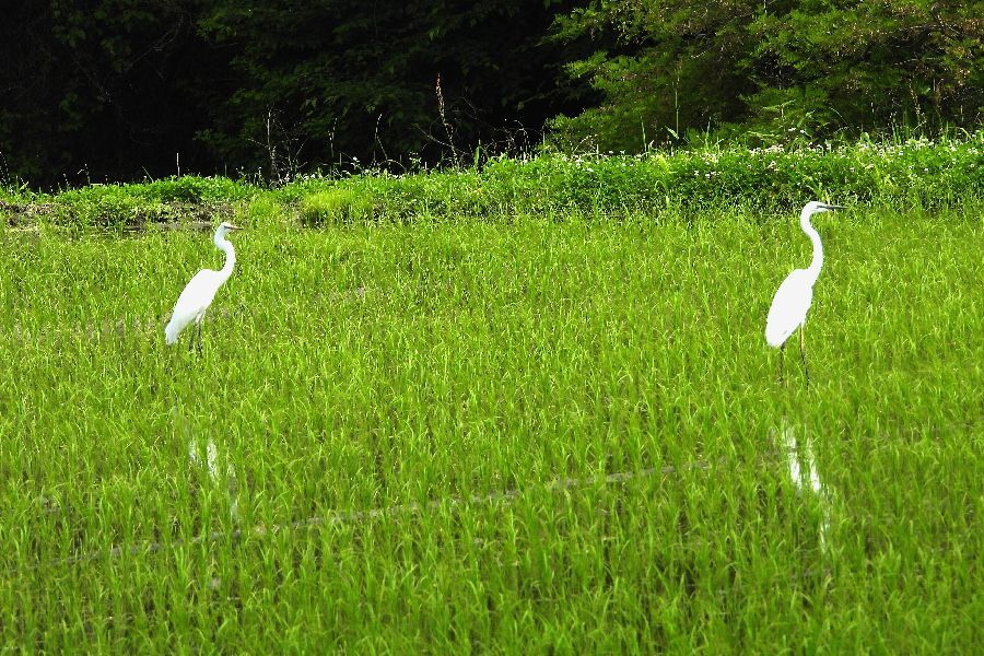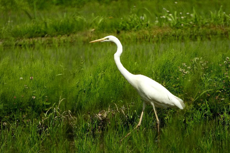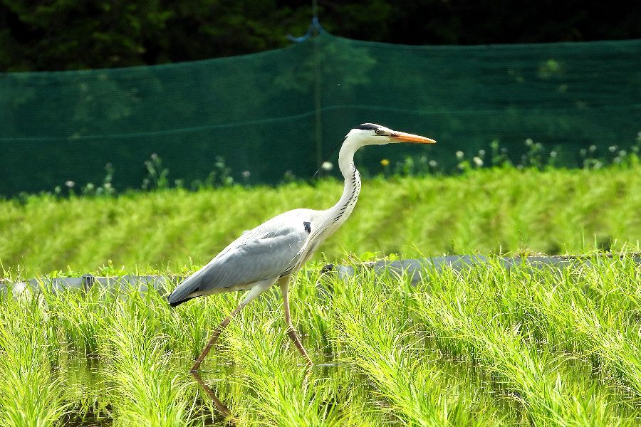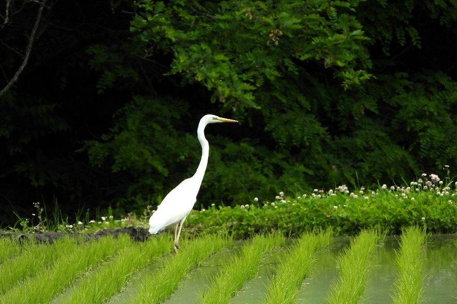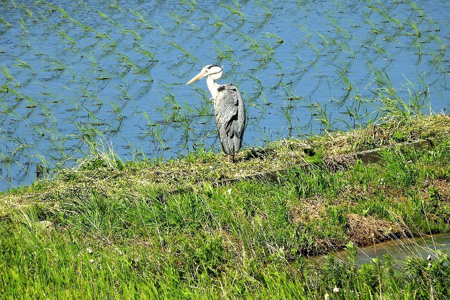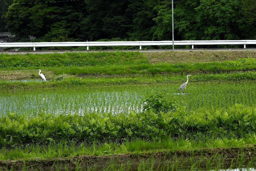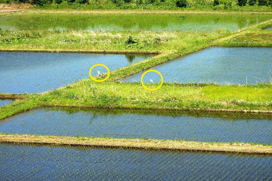 田植えがされた水田にはアオサギやシロサギがやって来ている。どれも人影に敏感で近づくと直ぐ逃げるので遠くからの望遠撮影。